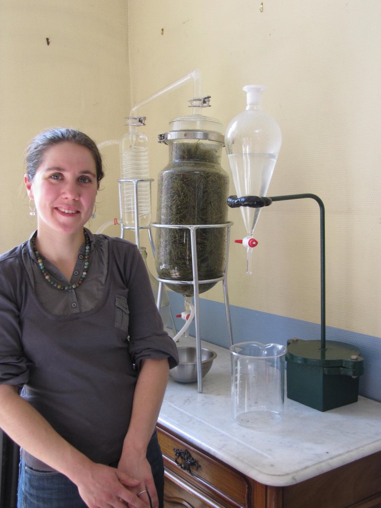 Distillation de plantes (issus de la culture ou de la cueillette sauvage) à la vapeur d'eau dans le but de produire des hydrolats (ou eaux florales). Ex : pin, romarin, sauge, thym... variables suivant les années et la saison.