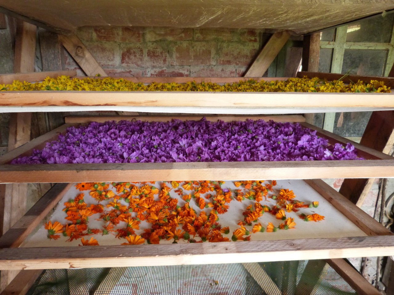 Réalisation de macérats huileux de plantes, notamment arnica, millepertuis, souci... à partir de plantes cueillies manuellement, séchées et ensuite macérées dans des huiles végétales avant filtration. Les préparations obtenues font partie intégrante des formules de cosmétiques, auxquelles sont ajoutés des huiles essentielles, cire d'abeille, karité, huiles végétales... Le tout 100 % BIO et naturel.